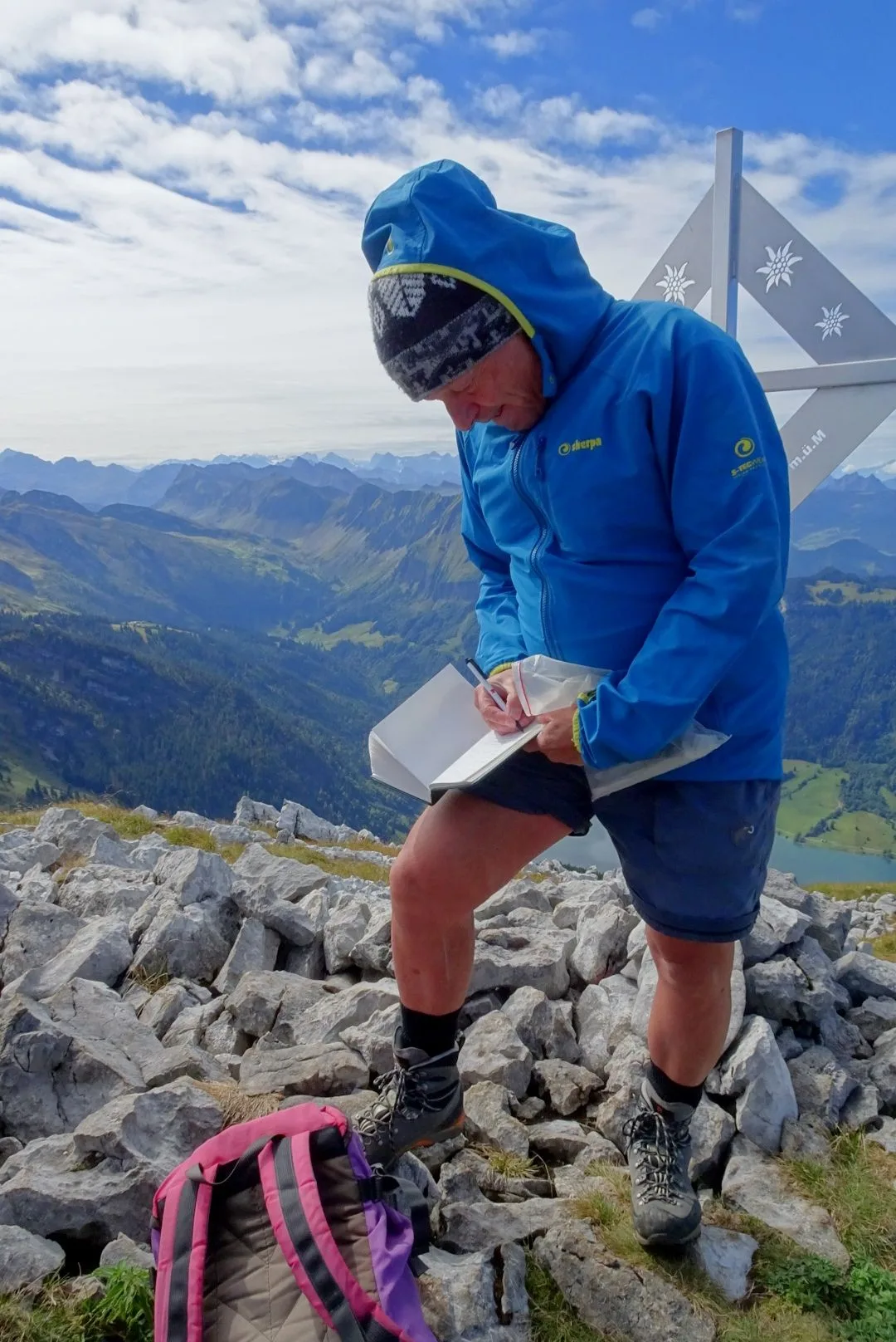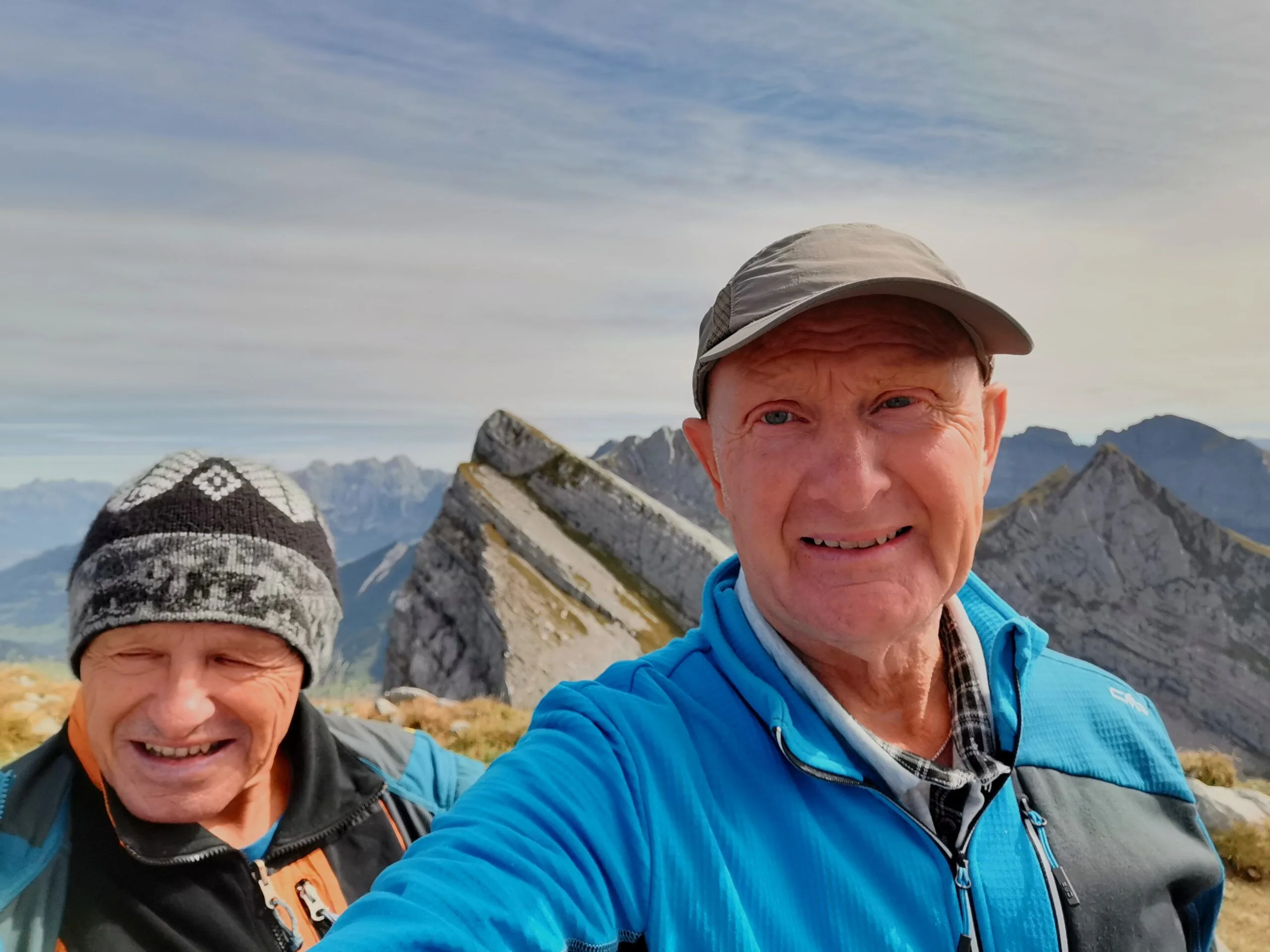 Nach rund drei Stunden ununterbrochenem Aufstieg gönnten wir uns die erste Pause. Kurz darauf, nach insgesamt 1’130 Höhenmetern, erreichten wir den Gipfel. Oben überraschte uns ein kalter Wind, der uns scharf ins Gesicht blies.