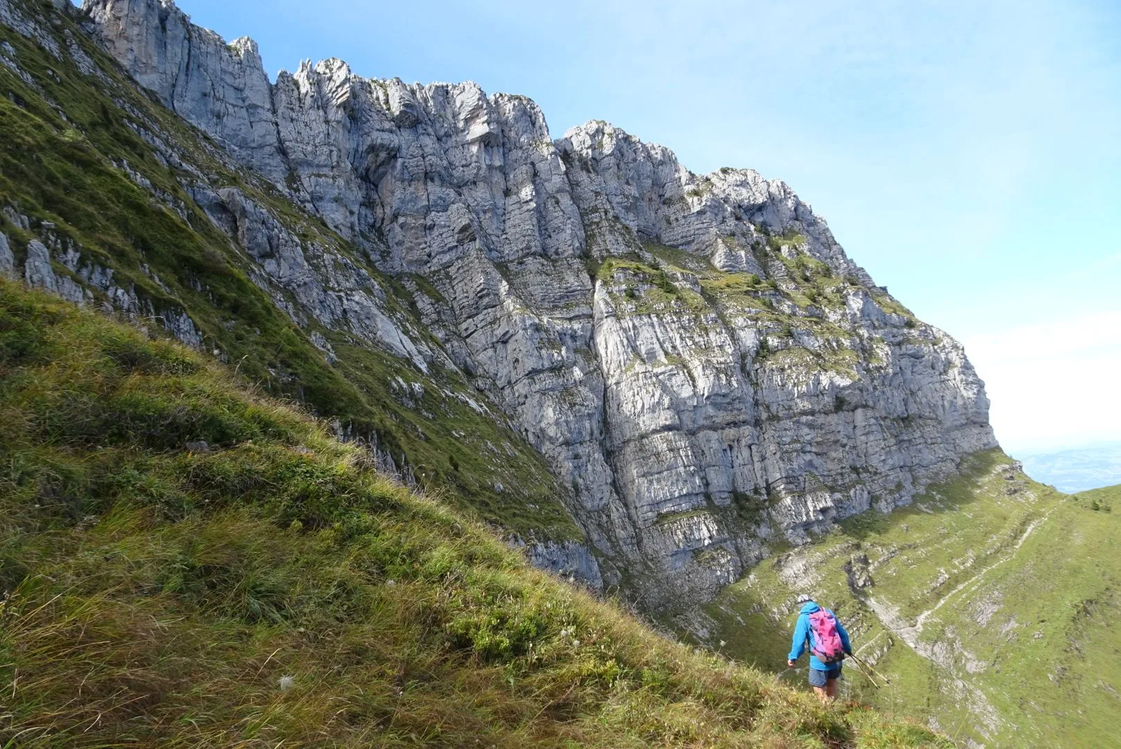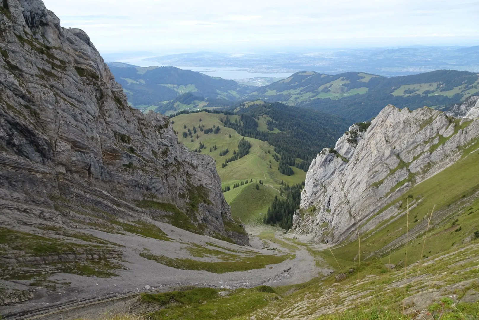 Der Abstieg entlang der imposanten Bockmattli Türme führte uns erneut durch sumpfiges Terrain, bevor wir schließlich über Wiesen und durch Wald nach Innerthal gelangten – direkt zur Postautohaltestelle via Restaurant.